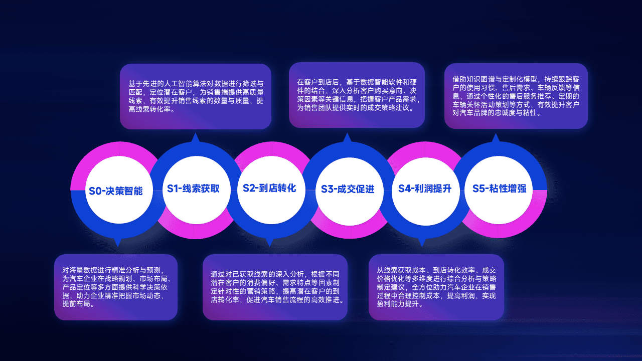 通过拓宽潜在客户来源、、、优化线索分配并提高到店转化率,,,,以增强销售效率。。。。同时,,,利用线索数据不断优化分析模型,,,,有效提升转化率,,扩大营销影响力。。。。